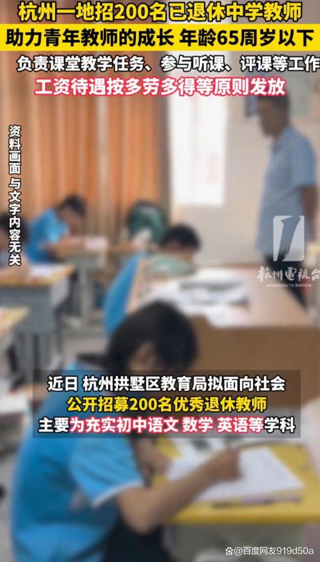 近期,杭州拱墅区宣布公开招募200名退休教师,年龄放宽至65岁,此举在网上引发热议。与各地教师缩编、考编热度下降的趋势相反,拱墅区为银发族提供了“职场第二春”的机会。
