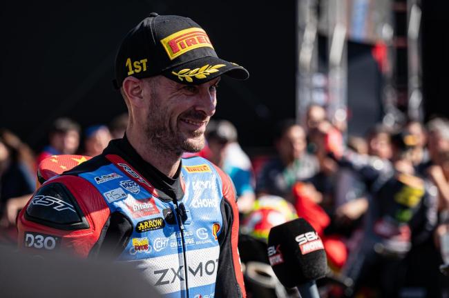 3月29日,在葡萄牙波尔蒂芒赛道,34岁的瓦伦丁·德比斯骑着53号赛车,稳稳地压在竞争对手前面。最终,他以3.685秒的优势冲过世界超级摩托车锦标赛中量级组别(WorldSSP)第二回合终点线,赢得周末双冠。