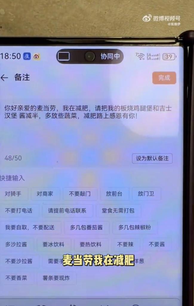 此前,张维伊自曝过年期间体重增加了13斤,并开始在社交平台上征集轻松的减肥方法。好友蒋诗萌向他推荐了一种看似违背常规的“吃麦当劳减肥法”。该方法的具体操作是:早餐喝黑咖啡和水煮蛋,午餐吃两个麦当劳汉堡(酱料减半、增加蔬菜量),晚餐则吃两个馒头,全天进食时间控制在8小时内,并且要多喝温水。