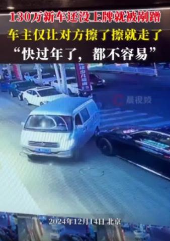 【百万新车被剐蹭车主让对方擦一下】12月14日,北京,130万新车还没上牌就被剐蹭,车主仅让对方擦了擦就走了。车主狄先生称,面包车司机是到店里送货的,出门正好刮到他的车,“车买来是开的,不能供着,小剐蹭无所谓,与其都不开心,还不如都开开心心的。” 网友:车主通透,格局大,怪不得你赚钱。来源:潇湘晨报